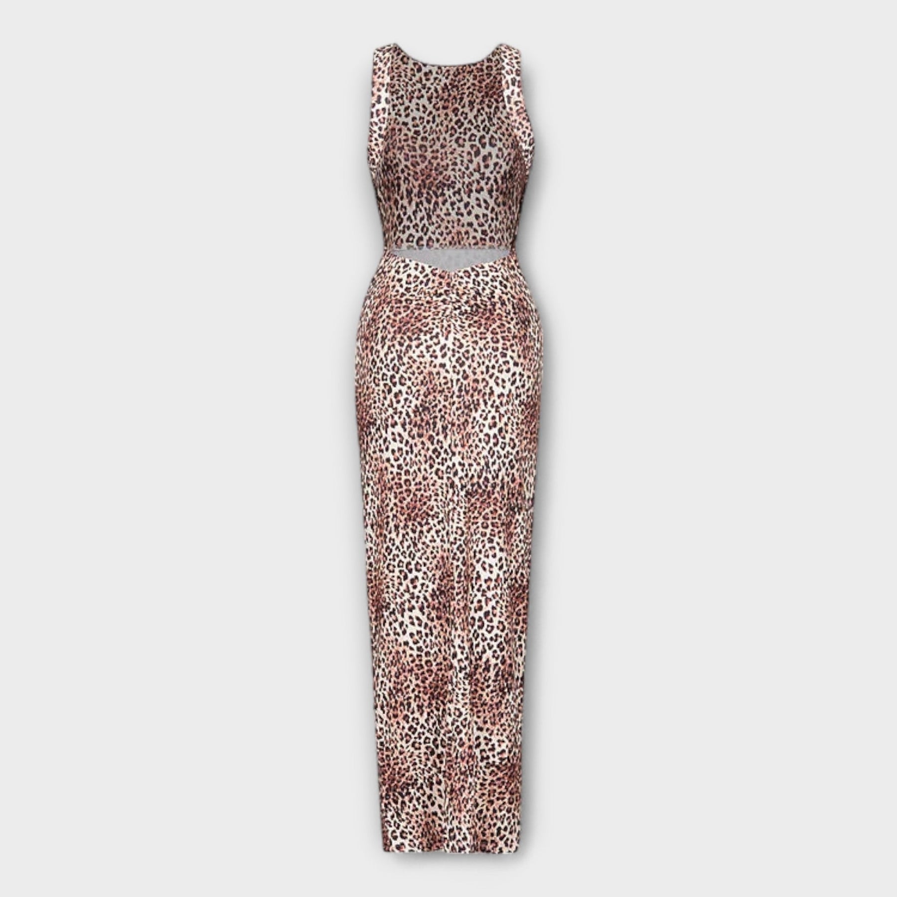 Della - Maxikleid mit Leopardenmuster und Rückenfreischnitt