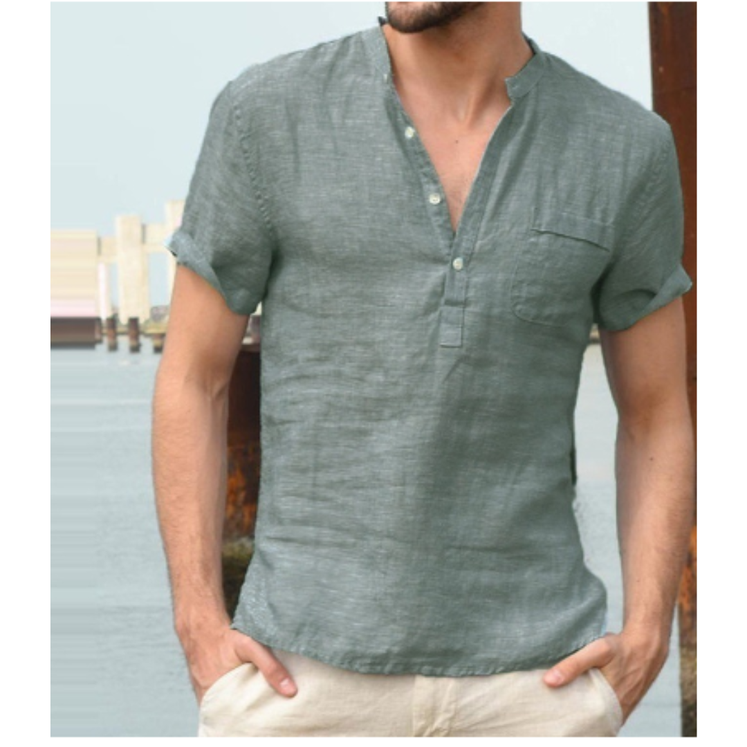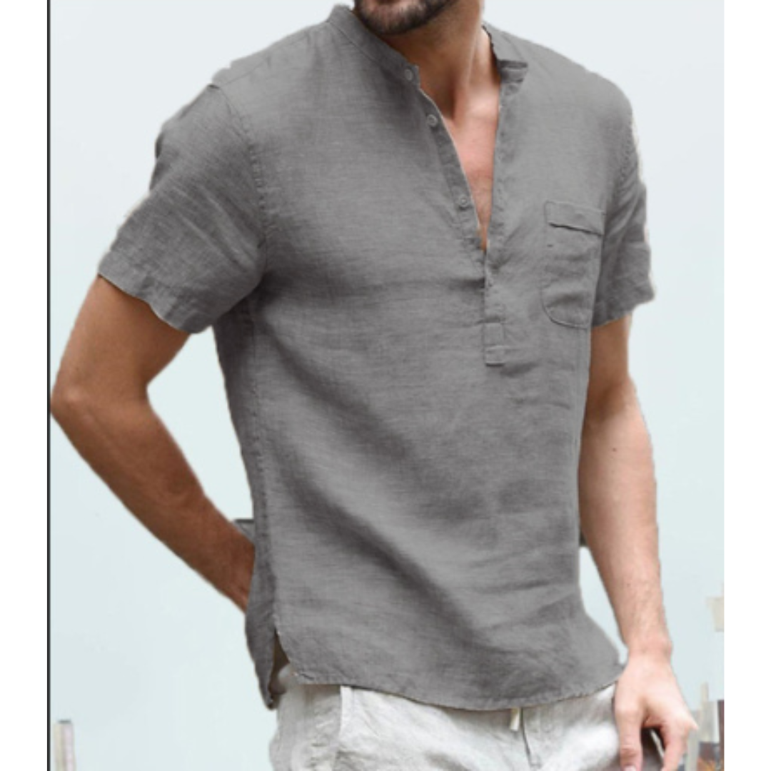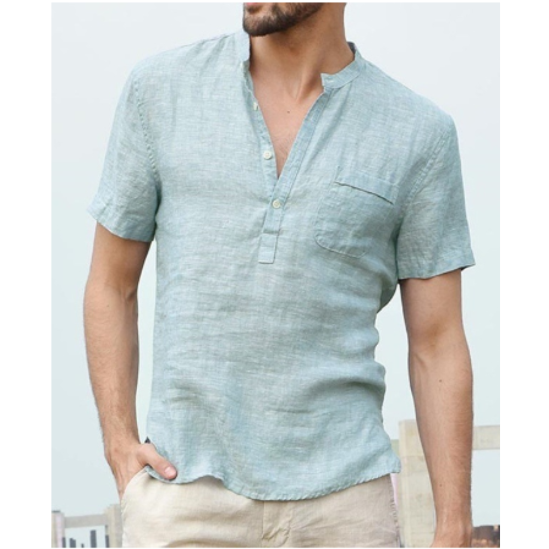Werten Sie Ihren Look mit dem Herrenhemd auf. Das hochwertige Material sorgt für Atmungsaktivität und Raffinesse. Mit stilvollem Stehkragen und trendigen kurzen Ärmeln ist es ideal für sommerliche Anlässe, ob am Strand oder mit Freunden. Bleiben Sie cool und schick.