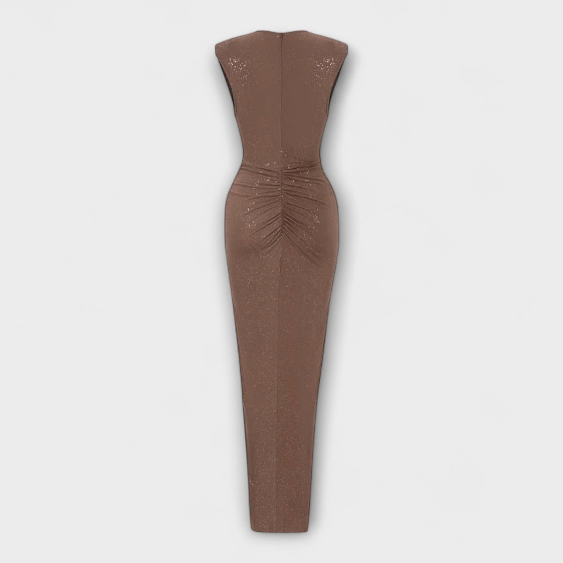 The product title remains unchanged: "Thea - Maxikleid mit tiefem V-Ausschnitt".