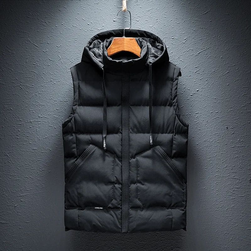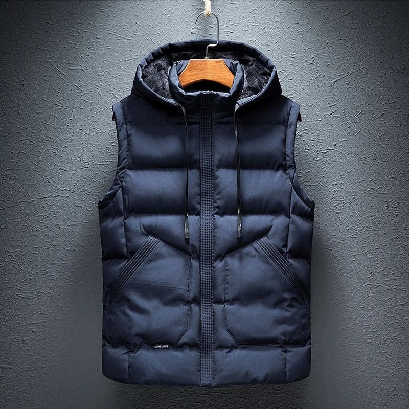 Mit unserer wattierten Weste mit abnehmbarer Kapuze bleiben Sie warm und sehen gut aus. Sie bietet Komfort und Schutz mit einer gesteppten Außenschicht und mehreren praktischen Taschen. Perfekt für kühle Tage.